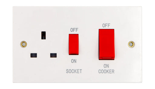 View full detailsDeta Vimark VS1302 White Moulded Square Edge 45A Cooker Control Unit with Red Switch