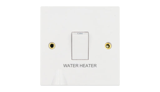 View full detailsDeta Vimark VS1390WH White Moulded Square Edge 20A DP Switch Marked 'Water Heater'
