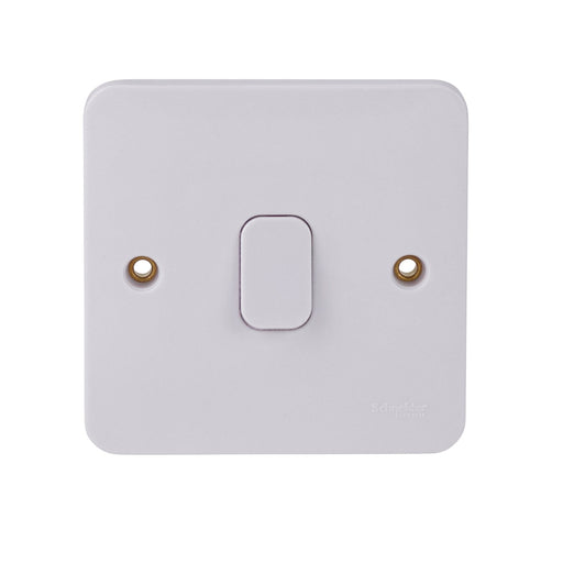 Schneider Electric GGBL1012116AS Lisse White Moulded 10AX 1G 2-Way Architrave Switch & 1G 16mm Surface Pattress