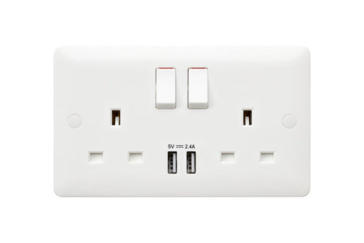 MK Base MB24344WHI White Moulded 13A 2G DP Switched Socket + 2xUSB 2.4A