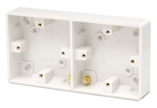 Click Mode CMA089 White Moulded Dual Accessory 29mm Deep Pattress Box with Earth Terminal