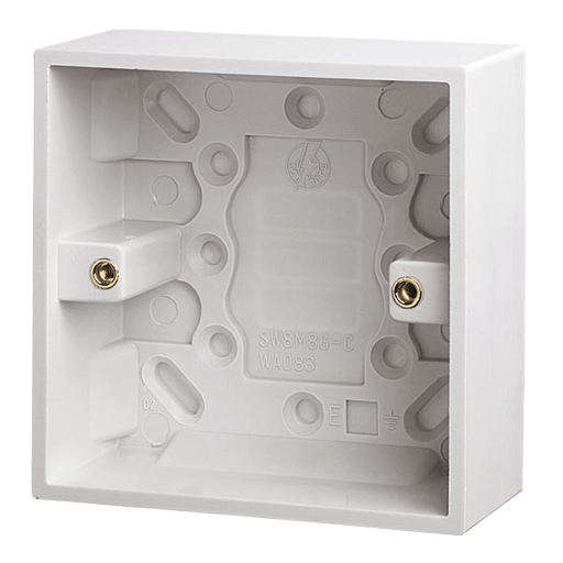 Knightsbridge SN1700 White Square Edge Single 35mm Pattress Box + Earth Terminal