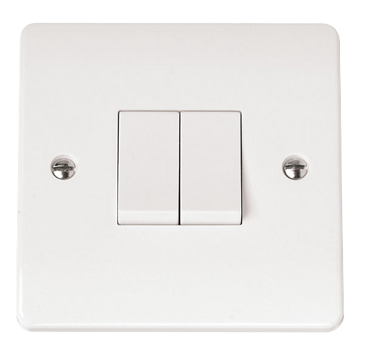Click Mode CMA012 White Moulded 10AX 2 Gang 2 Way Plate Switch