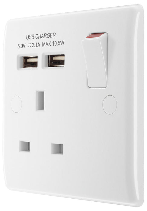 BG White Round Edge 13A SP Single Socket + 2x USB