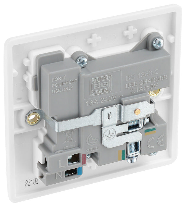 BG 821U2 White Round Edge 13A SP Single Socket + 2x USB