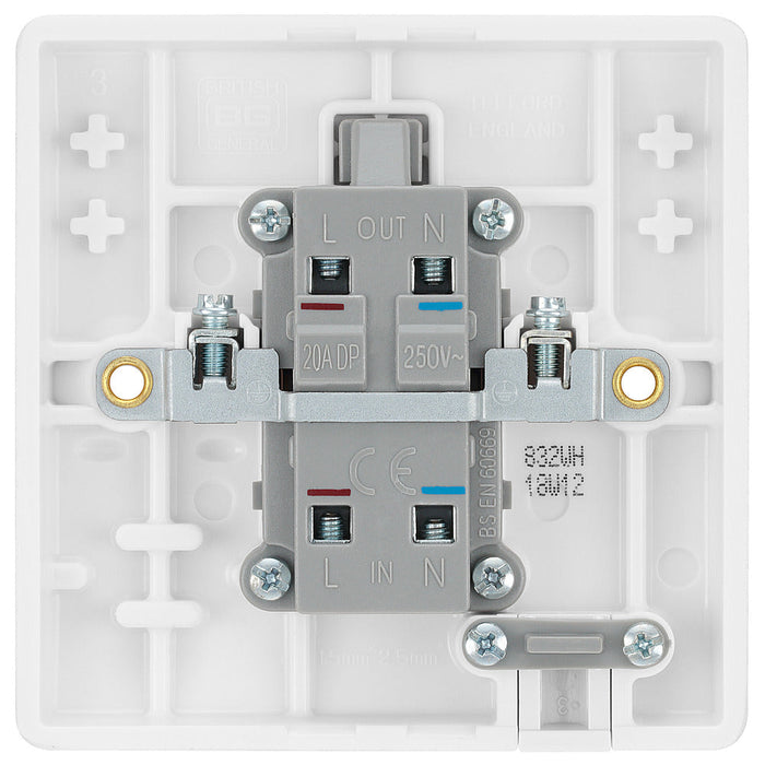 BG 832WH White Round Edge 20A DP Switch marked Water Heater + Cable Outlet