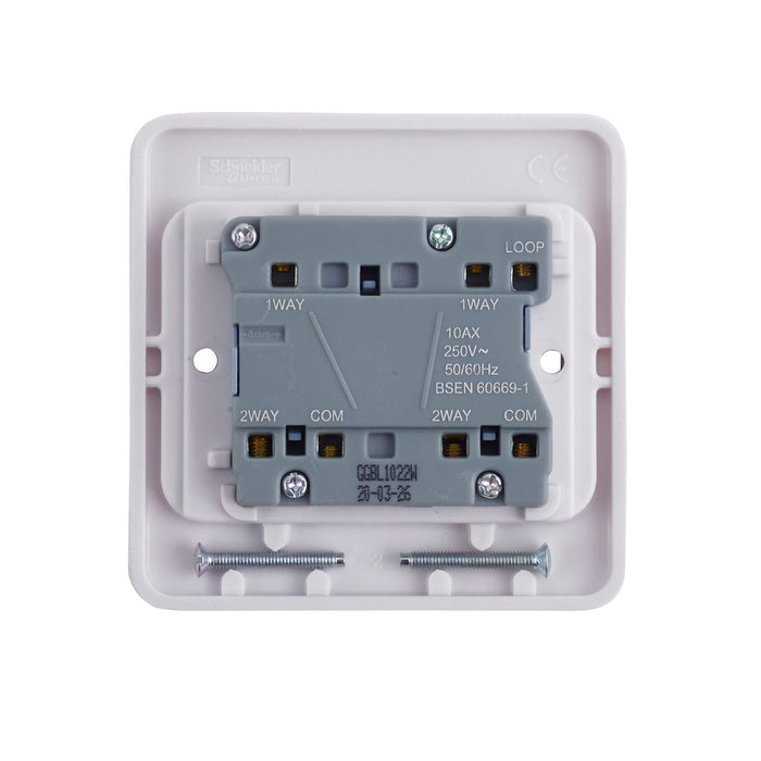 Schneider Electric GGBL1022W Lisse White Moulded 10AX 2G 2-Way Wide Rocker Switch