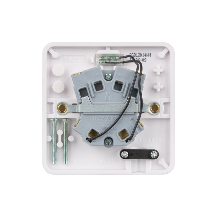 Schneider Electric GGBL2014WH Lisse White Moulded 20AX DP Switch with LED Indicator, Flex Outlet & Printed 'Water Heater'