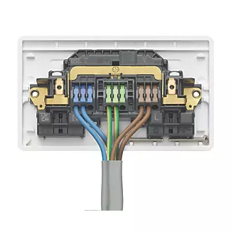The use of screwless terminals makes wiring a socket faster, easier, and safer. Spring-loaded terminal clamps ensure no loose wires for a more secure connection. Each terminal entry point accepts 4mm2 rigid (solid or stranded) cable. Color-coded terminal levers to match cable housing for added safety and ease of installation. Cable strip measuring tape will fit into a 25mm back box.