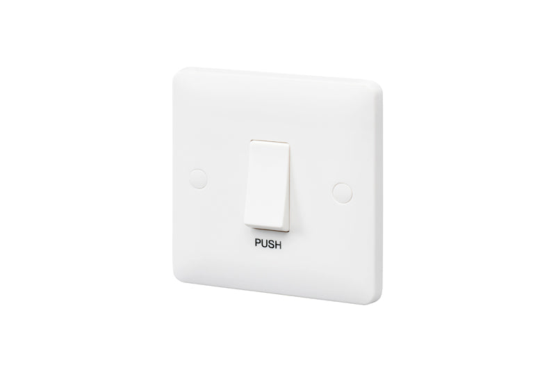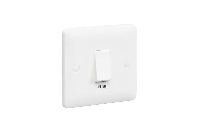 MK Base MB4868WHI White Moulded 10A 1G Push Switch marked "PUSH"