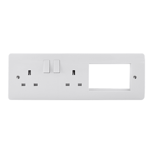 BG 822EM4 White Round Edge 13A DP Double Socket & Quad Euro Module