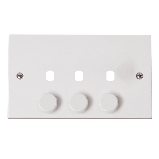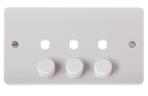 Click Mode CMA147PL White Moulded 3G Unfurnished Dimmer Plate & Knobs (1200W Max) - 3 Apertures