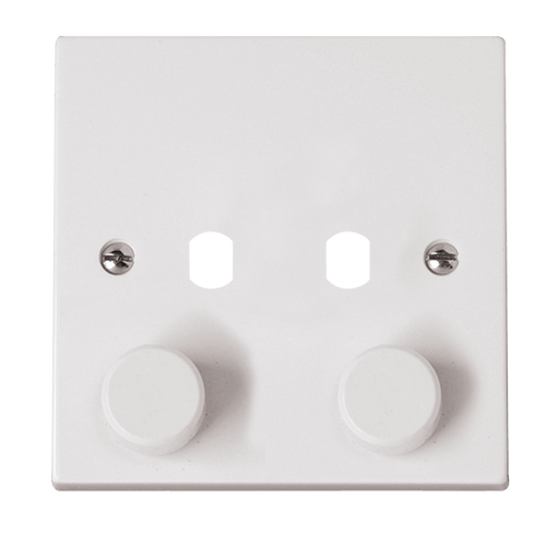 Click Mode CMA146PL White Moulded 2G Unfurnished Dimmer Plate & Knobs (800W Max) - 2 Apertures