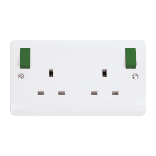 Click Mode CMA836PWGR White Moulded 13A 2G DP Switched Socket with Outboard Green Rockers