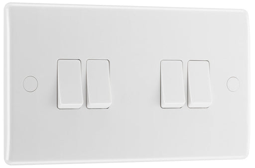 BG White Round Edge Quad Light Switch 10A WHITE MOULDED wiring accessories available in a range of Round Edge finishes Flush power LED and inl...