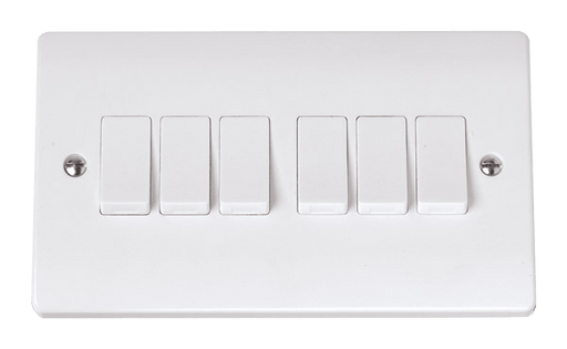 Click Curva CCA105 White Moulded 10A 6 Gang 2 Way Switch