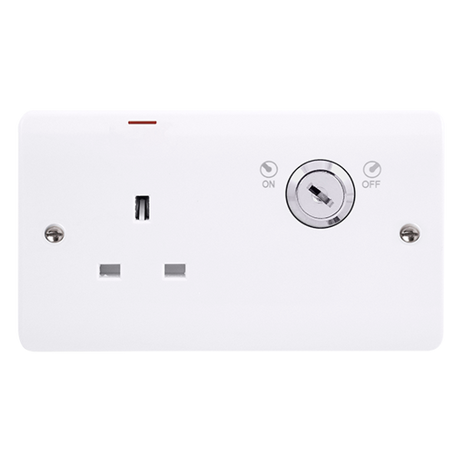 Click Mode CMA2675 White Moulded 13A 1G Double Pole Key Lockable Socket with LED (Twin Earth)