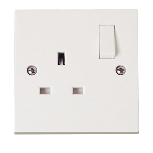 View full detailsDeta Vimark VS1207SPR White Moulded Square Edge 1 Gang 13A Switched Socket SP Recessed Switch