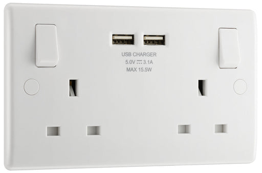 BG 822UAC12 White Round Edge 13A Double Switched Power Socket + USB A+C (12W)