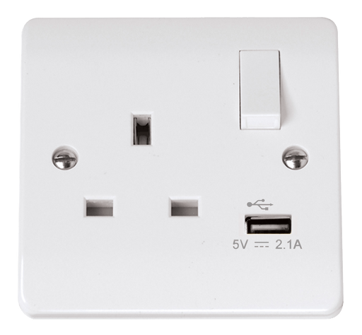 Click Mode CMA770 White Moulded 13A 2G Switched Socket Outlet + 1x 2.1A USB