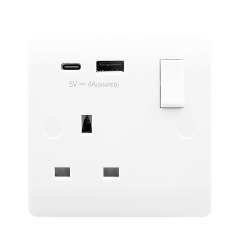 Knightsbridge CU9002 White Curved 13A 2G Switched Socket with Dual USB-A & USB-C Charger (5V DC 4.8A Shared) – Outboard Rockers The Knightsbri...