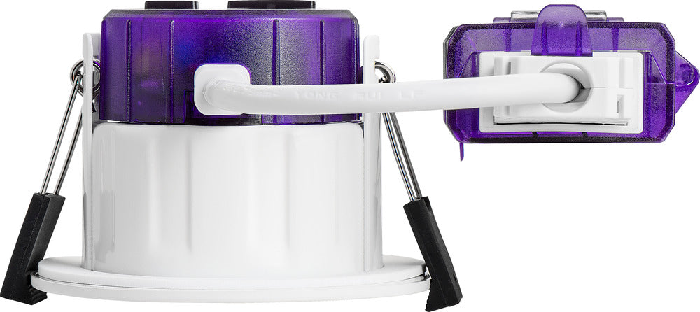 Representing the pinnacle of downlight technology today - specifically developed to streamline and help first-second fix installations, offering the very latest innovations for safety, ease of installation and testing compliance. Combining premium features, including wide 60º baffled back lens for reduced glare, with new innovative developments, from our QuickView window making it easier to inspect cables after locking lid shut, to our 500V VDE certified connection block, allowing installers to save time when 500V testing full installations. A 500V insulation testing connector block allowing you to comprehensively test all installations without the hassle Fully separable VDE certified connector block, providing complete 360-degree access to the terminals saving installation time QuickView Cable Window for safety and ease of inspection Power and lighting modes selectable. 4W/6W as standard Choose between Dim2Warm and ColourChange models for complete lighting flexibility Fire tested in 30, 60 and 90 minute solid timber joist, & 30 minute i-joists Available in Fixed, Regressed and Adjustable bezels Supplied with matt white bezel, with additional finishes available