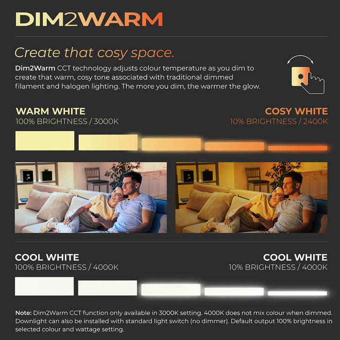 • Power Selectable 6W/4W & Colour Selectable 3000K/4000K - Dim2Warm technology as standard.